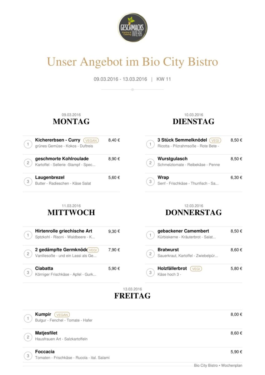 Unser Angebot im Bistro Bio City